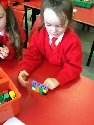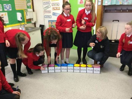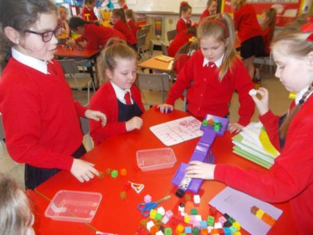 Holy Cross Girls' is continually looking for opportunities to develop the children's self esteem and confidence in maths. We work with the University of Ulster as part of the 'Yes I Can' programme which supports children's understanding in numeracy. Through active learning workshops, the university practitioners make use of the Izak 9 cube to bring about a fuller understanding of fractions, percentages, decimals, equivalence and shape.