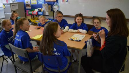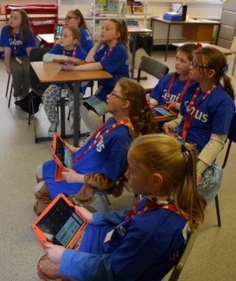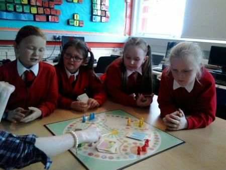 Primary 7 girls participate in an ePartners programme and communicate through email and video conferencing with children in other schools sharing ideas and information.
