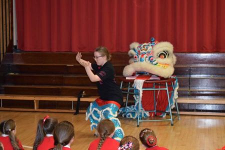 Miss Hanley, one of our P2 assistants and part of Success Lion and Dragon Dance Group from Queen's University, introduced us to Lion Dancing, a traditional dance performed on special occasions for good luck. She then showed us the Chinese Martial Art of Tai Chi which the girls and staff really enjoyed.