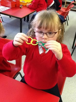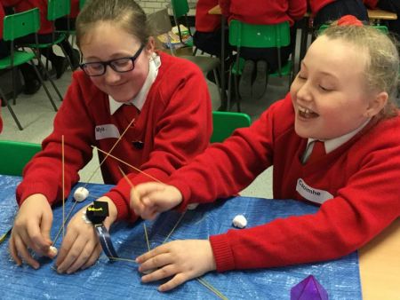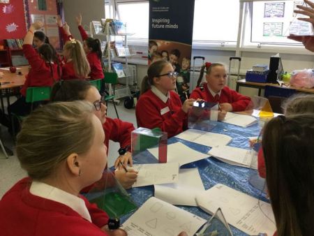 Holy Cross Girls' is continually looking for opportunities to develop the children's self esteem and confidence in maths. We work with the University of Ulster as part of the 'Yes I Can' programme which supports children's understanding in numeracy. Through active learning workshops, the university practitioners make use of the Izak 9 cube to bring about a fuller understanding of fractions, percentages, decimals, equivalence and shape.