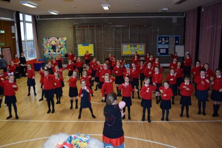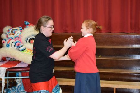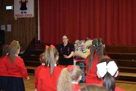 Miss Hanley, one of our P2 assistants and part of Success Lion and Dragon Dance Group from Queen's University, introduced us to Lion Dancing, a traditional dance performed on special occasions for good luck. She then showed us the Chinese Martial Art of Tai Chi which the girls and staff really enjoyed.
