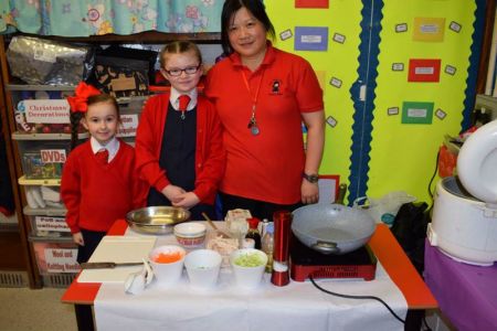 Mrs Cheung, our Chinese classroom assistant, took the time to show Primary 5 some Chinese cooking. They made egg fried rice with vegetables. The girls were very impressed with how quickly they could create a delicious and healthy meal. Some even tried to eat with chopsticks.