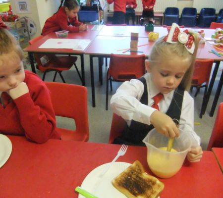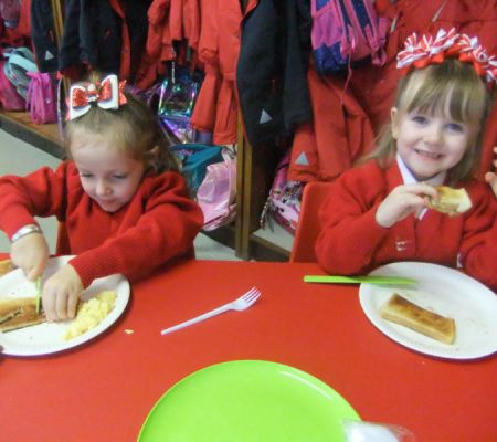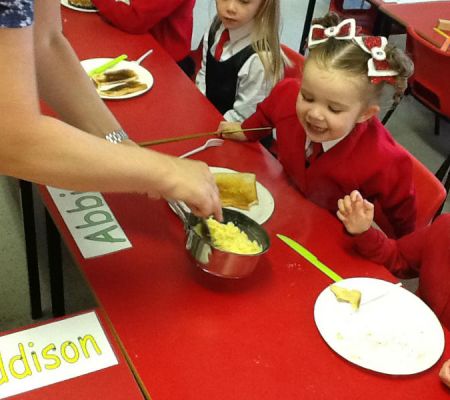 Our Primary One girls celebrated their first Christmas dinner in Holy Cross Girls'...