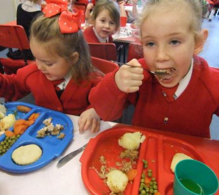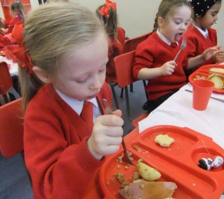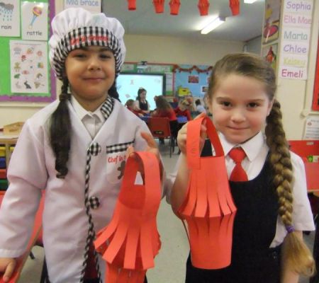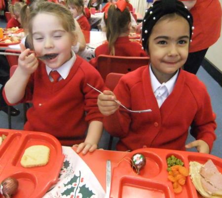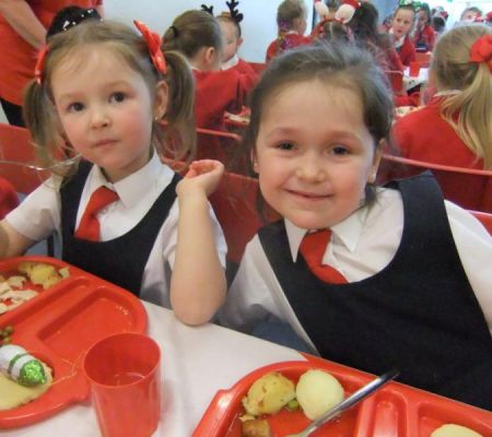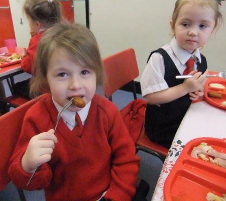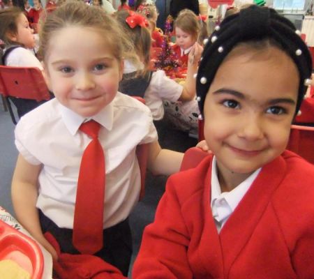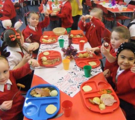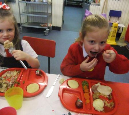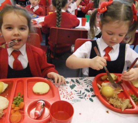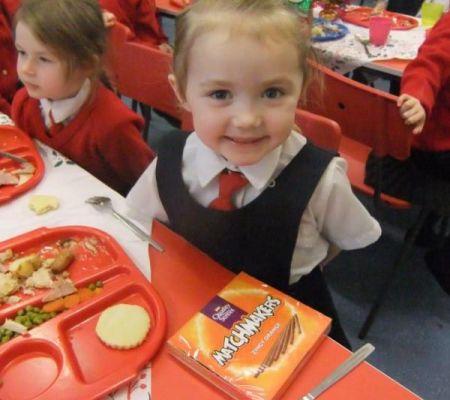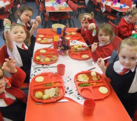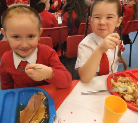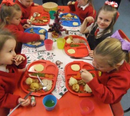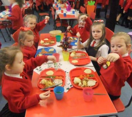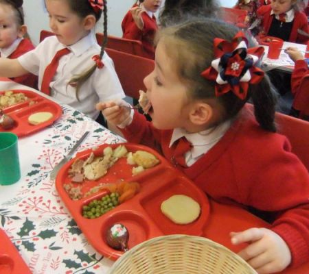 Our Primary One girls celebrated their first Christmas dinner in Holy Cross Girls'...