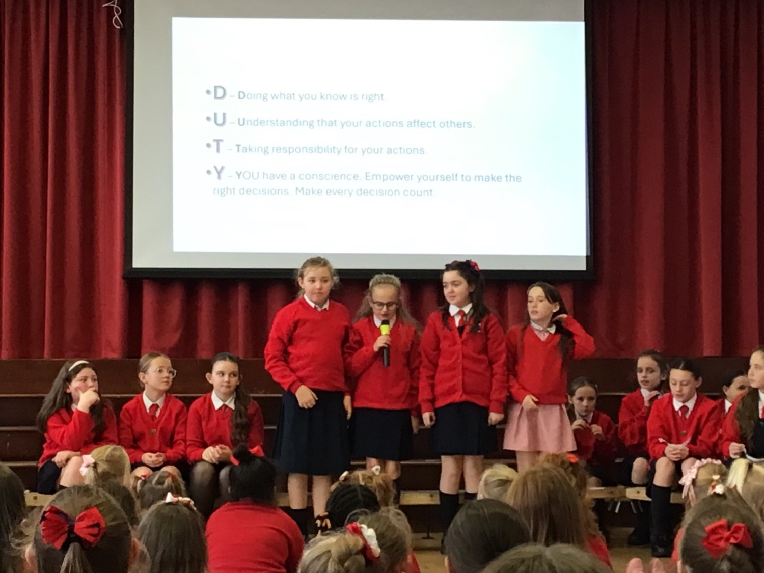 Well done to our fabulous Primary Seven girls who presented assembly today, based on the value of DUTY. The girls spoke confidently and performed their drama scenarios beautifully, giving us lots of ideas and reminding us of Martin Luther King Jr’s words, “The time is always right to do what is right.”
