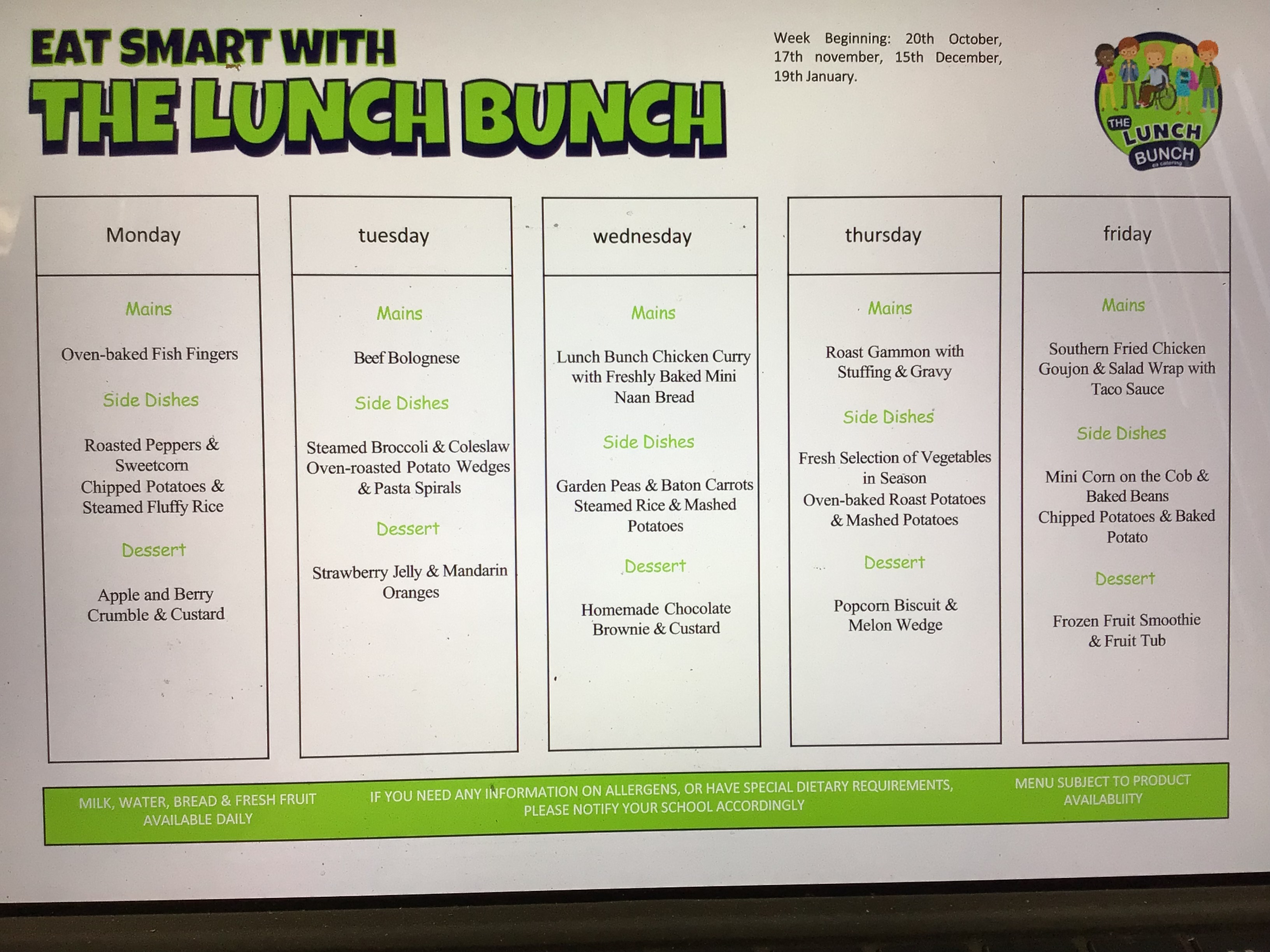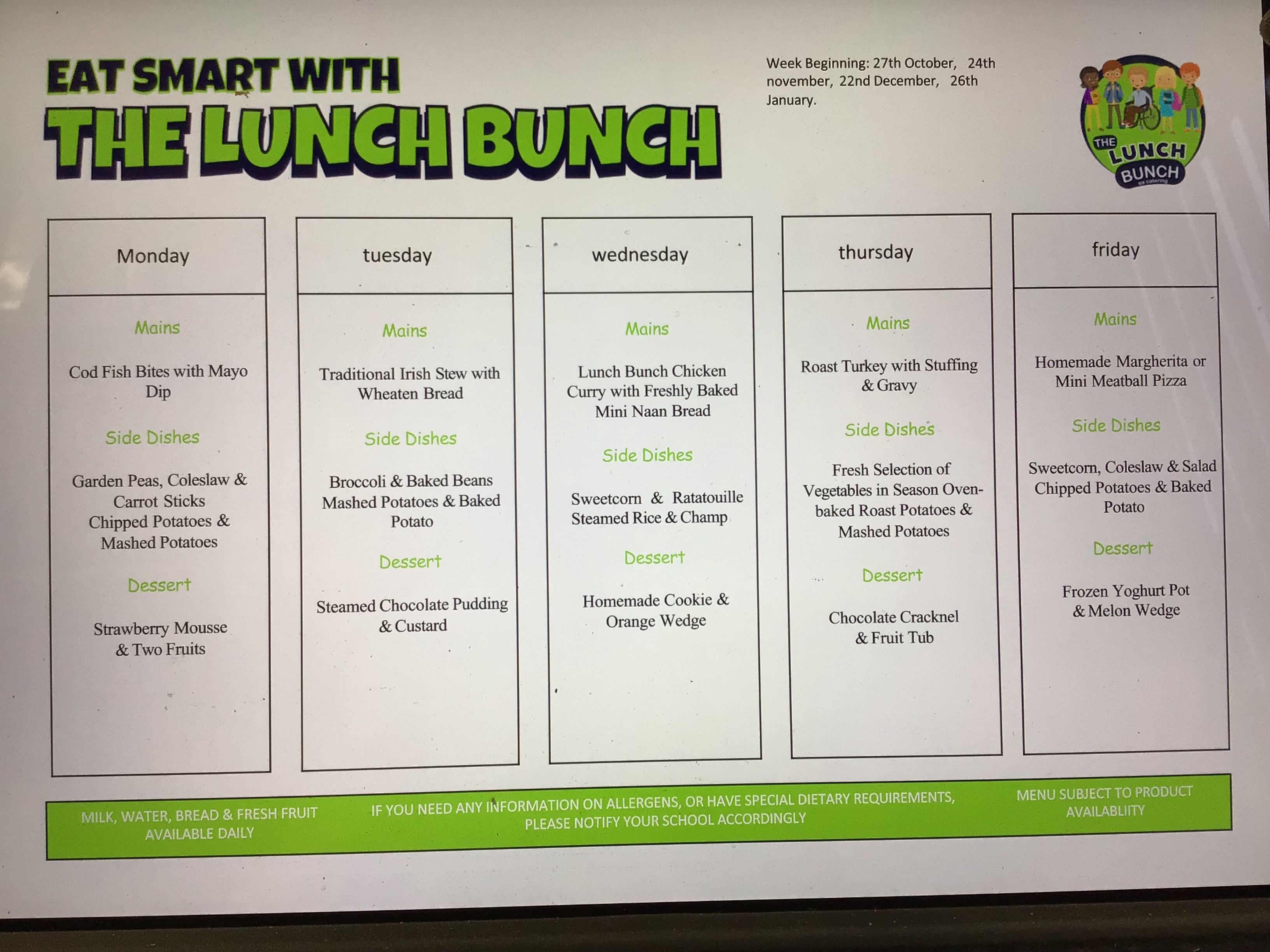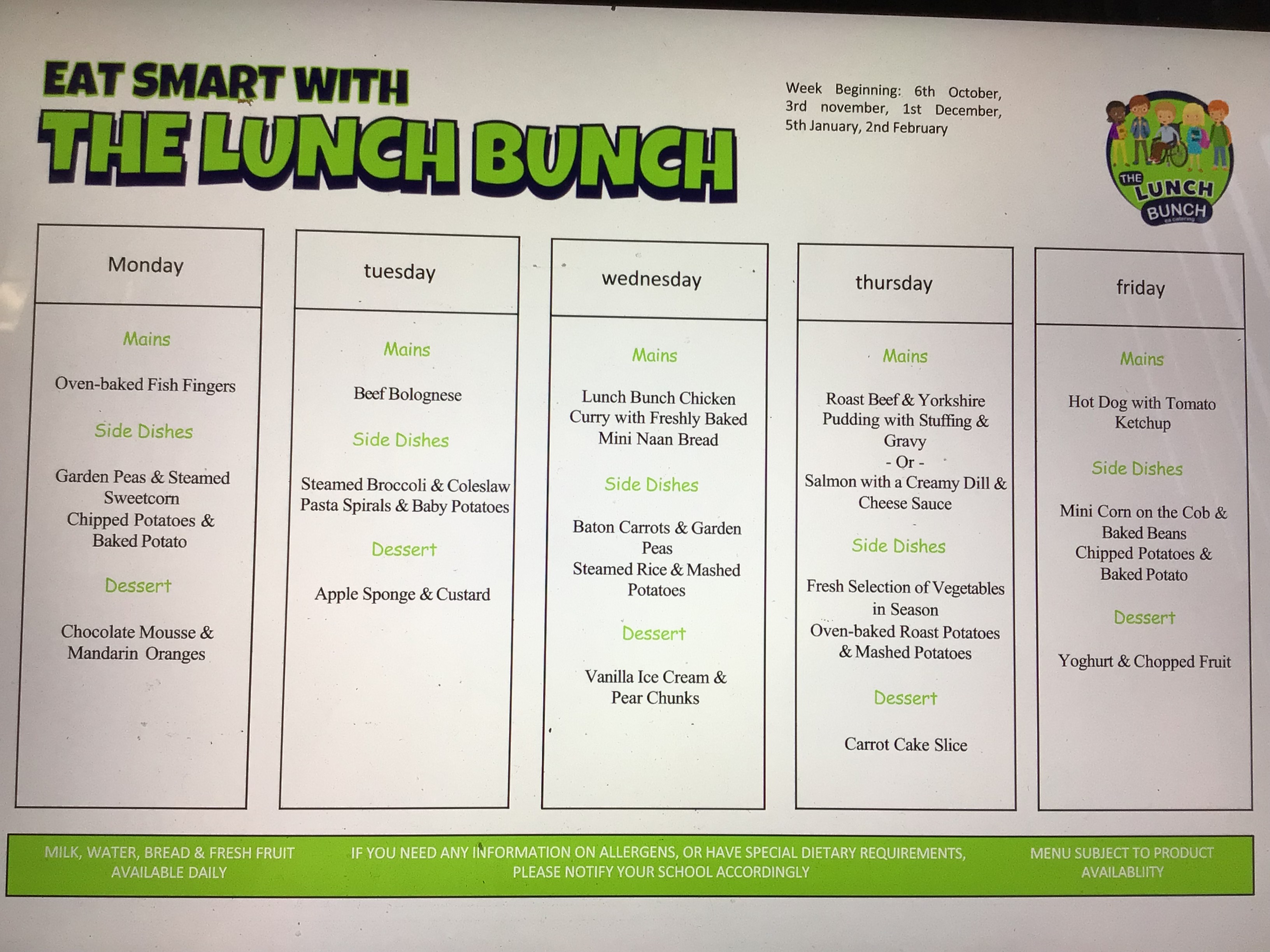 - Breakfast Club/Canteen Menu